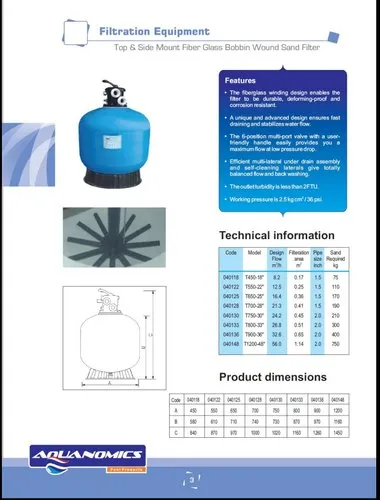 Top Mount Swimming Pool Sand Filter